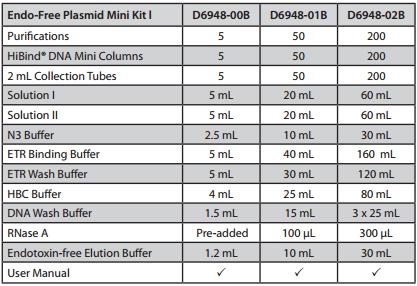 內(nèi)毒素(Endotoxin)是革蘭氏陰性菌細(xì)胞壁上的一種脂多糖,它能引起哺乳動(dòng)物發(fā)熱,甚至?xí)?dǎo)致動(dòng)物休克。常規(guī)的質(zhì)粒純化試劑盒由于無(wú)法去除內(nèi)毒素的污染,從而大大降低了質(zhì)粒轉(zhuǎn)染的效率。Omega公司采用獨(dú)特的內(nèi)毒素吸附緩沖液(ETR Binding Buffer),能有效去除質(zhì)粒中的內(nèi)毒素污染,純化的質(zhì)粒中內(nèi)毒素含量小于0.1EU/µg,可大大提高轉(zhuǎn)染實(shí)驗(yàn)效率和動(dòng)物注射效果。