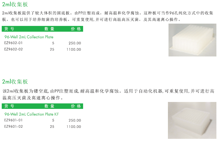 96-Well 2ml Collection Plate EZ9601 EZ9602